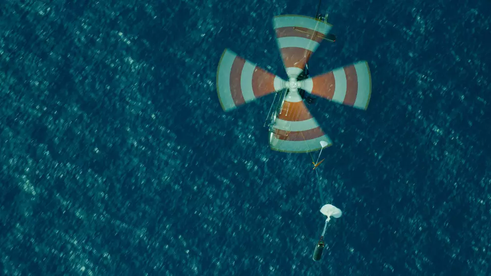 К спускающейся ступени подлетел вертолет Sikorsky S-92, который зацепился крюком за трос парашюта. После этого он должен был спуститься к стоящему рядом специальному судну и мягко опустить груз на площадку.