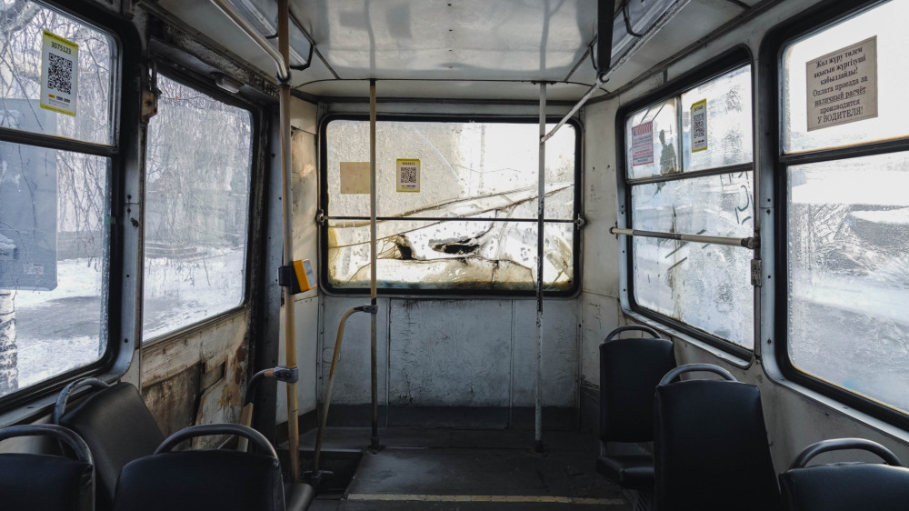 Трамвай в Усть-Каменогорске встречает пассажиров строкой Абая о любви к человечеству. А за окном — минус 38, внутри — почти столько же. В вагонах