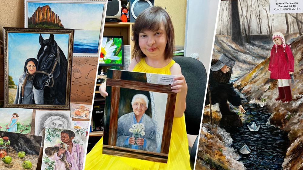 В Петропавловске живет необыкновенная девушка. Елена Шаламова, несмотря на тяжелую болезнь, сковавшую ее по рукам и ногам, рисует наполненные