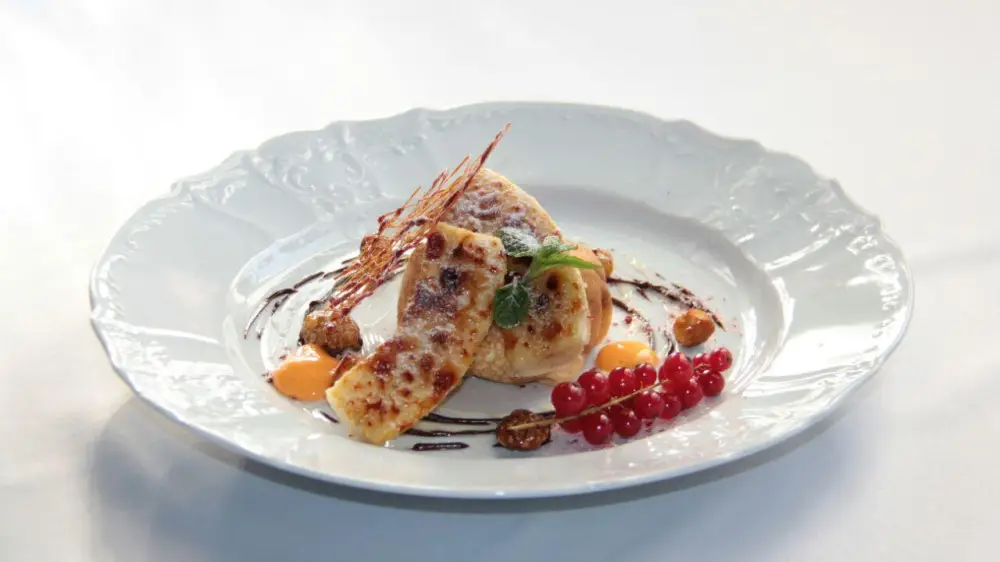 - Посыпьте сахаром и карамелизируйте с помощью газовой горелки.