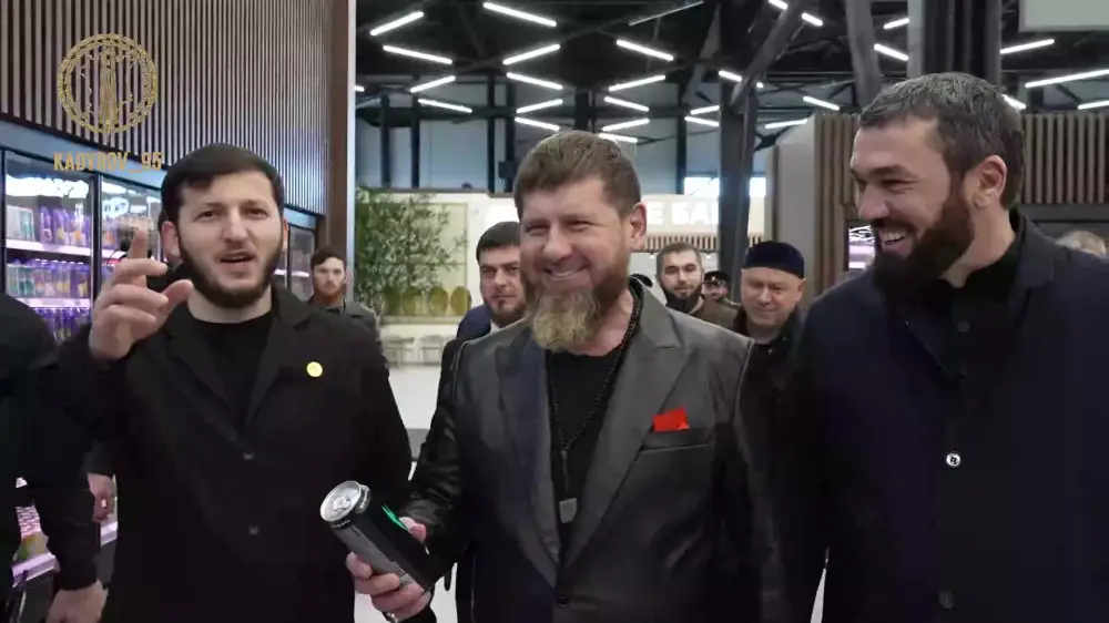 Напиток появился в видео с участием главы республики на прошлой неделе. На кадрах с открытия гипермаркета "Вкусдом" в Грозном Рамзан Кадыров пьёт "К-13". Рядом с ним стоит премьер-министр Чечни Магомед Даудов, который говорит, что это лучший энергетик.