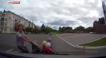 Жуткое ДТП попало на камеру видеорегистратора в городе Лесное в Свердловской области России. Как сообщает телеканал Life News, 20-летний водитель автомобиля Volkswagen Polo сбил мужчину, перебегавшего дорогу с тремя детьми: двое малолетних близнецов сидели в коляске, которую катил отец, еще одного мальчика мужчина вел за руку.