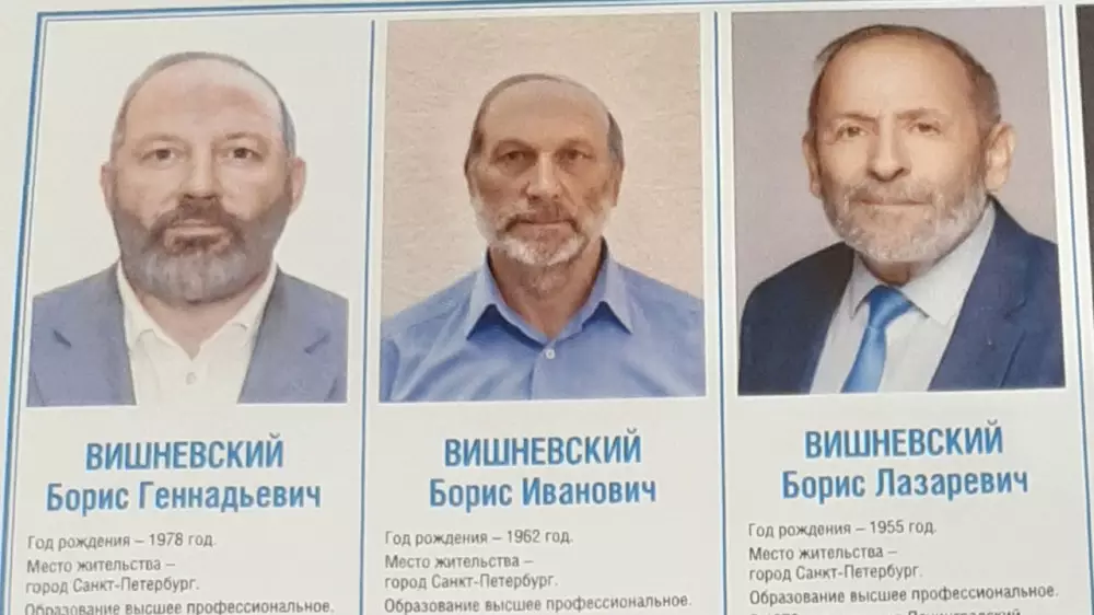 Издание также отмечает, что оба "двойника" - Борис Иванович и Борис Геннадьевич - сменили имя незадолго до предвыборной гонки. Таким образом, в бюллетене будут перечислены подряд трое Вишневских.
