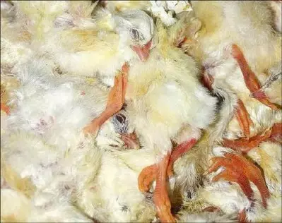 Взрослых птенцов бройлера сбрасывают в яму, закапывают и затем вспахивают трактором, маленьких - сотнями тысяч выбрасывают в бочки на мороз, заливая водой.