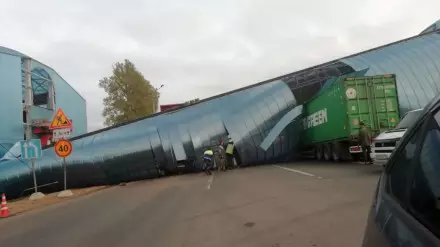 Водитель ехал с поднятым кузовом, что и привело к обрушению.