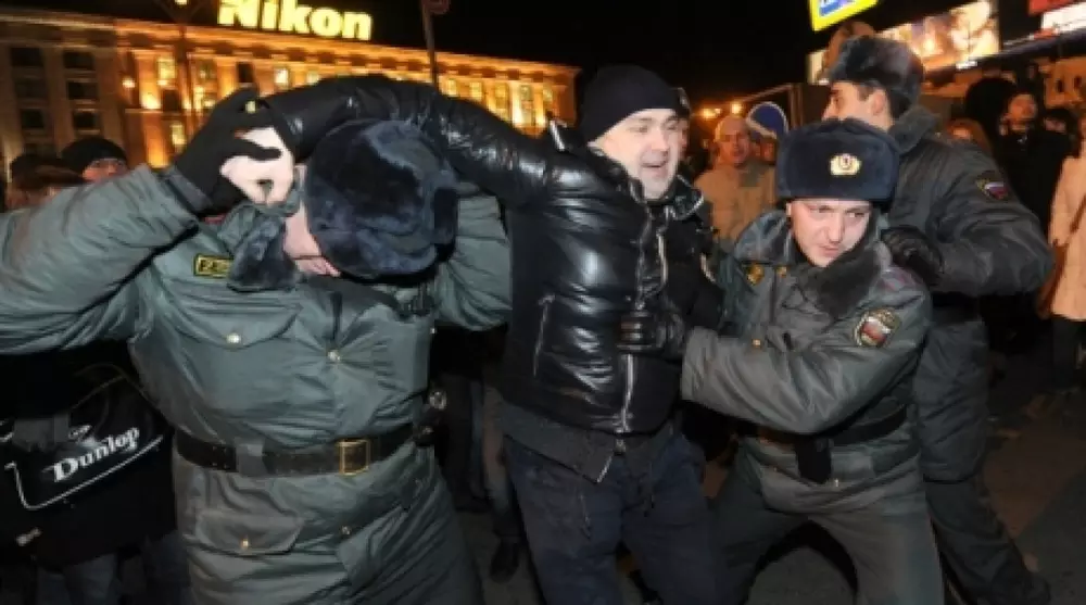 На Триумфальной площади в центре Москвы полицейские задержали около 20 человек, сообщает РИА Новости. Задержанные были одеты в белые футболки с наклеенными на них буквами. Встав в ряд, они образовали фразу: "Свободу Удальцову". Всех задержанных посадили в автобус и повезли в отделение полиции. Ранее в числе задержанных оказался лидер "Другой России" Эдуард Лимонов. Агентство отмечает, что на площади побывал и Дед Мороз. Он подъехал черном внедорожнике, опустил окно и прокричал журналистам и полицейским: "С Новым годом! Чистого неба! Ура, ребята". Лидер оппозиционного движения "Левый фронт" Сергей Удальцов отбывает десятидневный административный срок за неповиновение сотрудникам полиции во время пикета у Центризбиркома в Москве 24 декабря. 29 декабря в нескольких городах России прошли пикеты с призывом освободить оппозиционера.
