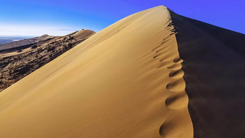 Хотя пустынь в Казахстане множество, классических же массивов, где до самого горизонта тянутся одни лишь безжизненные пески, у нас нет. А вот хрестоматийные участки с живописными грядами барханов, украшенных эоловой рябью, можно без труда отыскать. Среди них есть один особенный - Поющий бархан. Это гора из чистого песка высотой свыше 100 метров и длиной в несколько километров, расположенная на правом берегу реки Или.