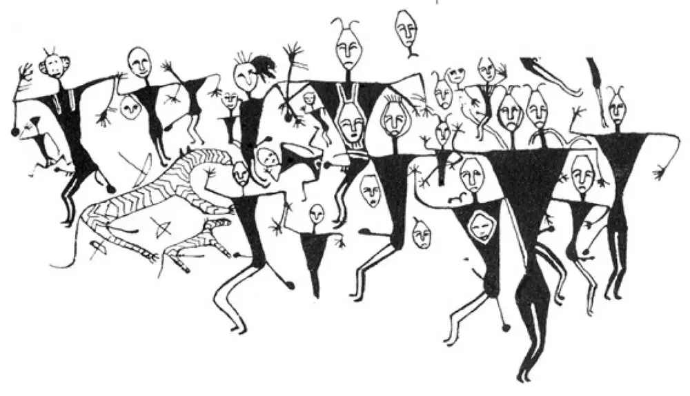 Примерный возраст петроглифов - четыре тысячи лет, а уникальность их в том, что в отличие от большинства примеров доисторического эротического искусства, представленных в основном абстрактными и бестелесными формами, они носят очень откровенный характер. Изображенные здесь мужчины и женщины, сочетающие в себе и мужские и женские признаки, а также различные животные (всего около 100 фигур, величиной от почти трех метров до нескольких сантиметров) совершают, как предполагают специалисты, некий первобытный ритуал плодородия. Почти все фигуры изображены в торжественных позах с вытянутыми параллельно полу и согнутыми в локтях руками, одна из которых направлена вверх, а другая вниз.