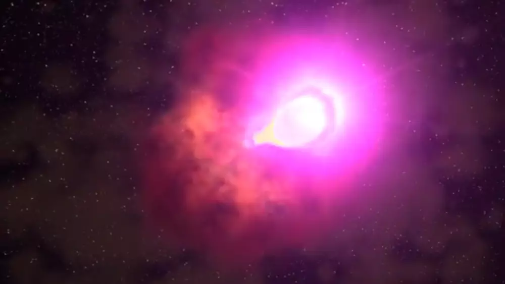 Как установили ученые, на этот раз виновницей вспышки стала небольшая, но невероятно плотная звезда. Ее масса превышала солнечную примерно в 30 раз, а по размеру она превосходила наше светило всего в 2-3 раза.