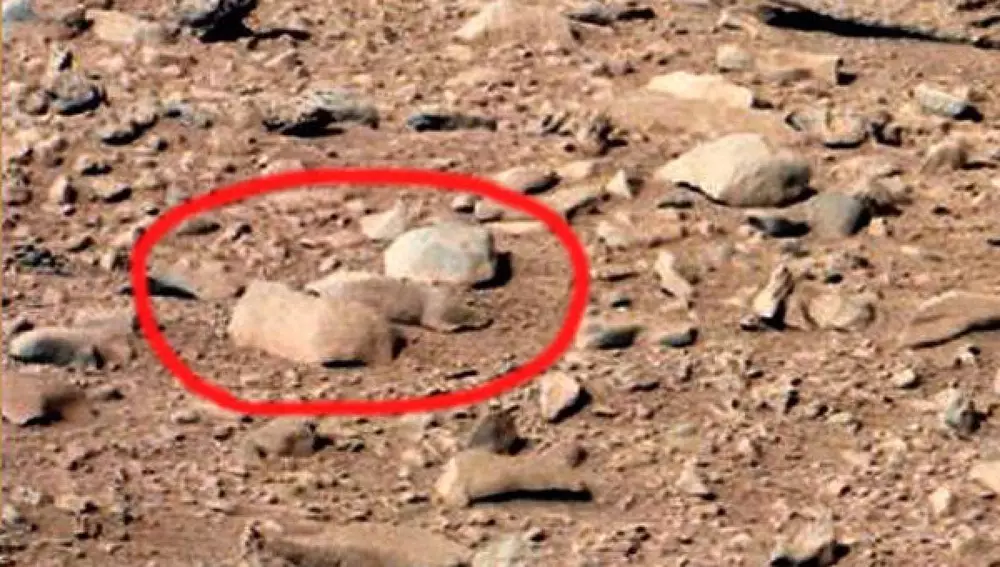 Снимок был сделан при помощи камер MastCam в районе Rocknest на дне кратера Гейла 28 сентября 2012 года. "Животное" на нем обнаружил пользователь портала любителей-уфологов под ником ScottCWaring.