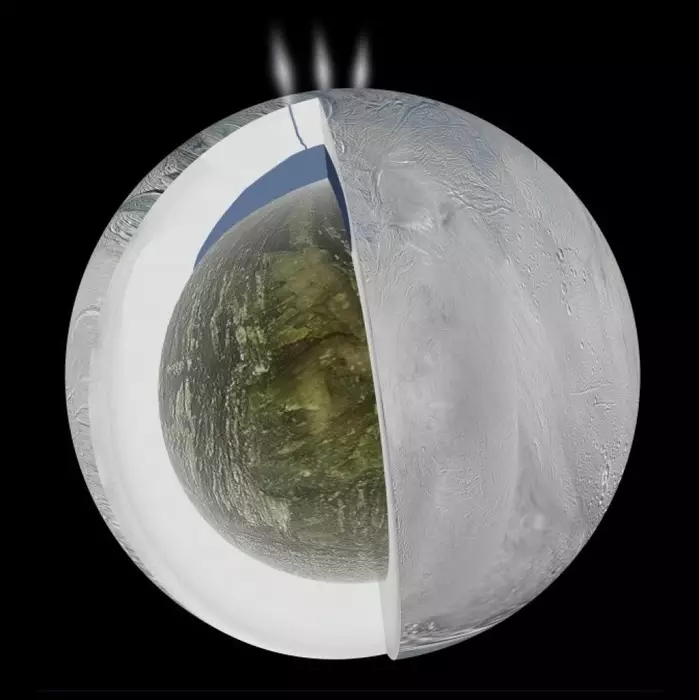 Доказательства существования жидкой воды под поверхностью Энцелада обнаружил межпланетный аппарат "Кассини", который вот уже 10 лет ведет изучение Сатурна и его спутников. В 2005 году зонд сфотографировал гейзеры водяного пара, бьющие в южном полушарии Энцелада.