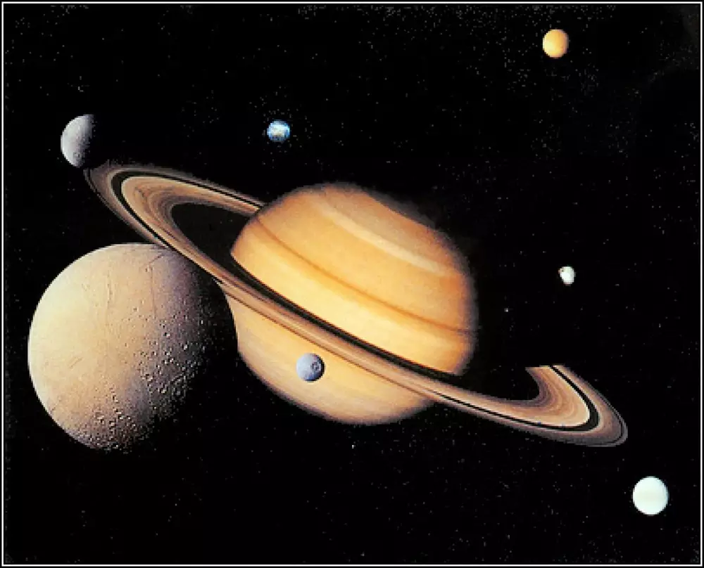 Снимки Энцелада были сделаны зондом "Кассини". В 2005 году на спутнике Сатурна обнаружили струи из частиц водяного льда и пара, которые выбрасываются в космическое пространство из параллельных трещин вблизи южного полюса.