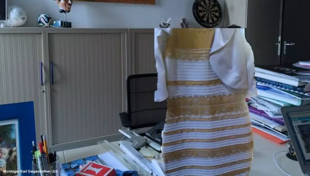 Оказалось, что люди на самом деле видят не белый или голубой цвет, а разный набор оттенков, начиная от светло-синего и заканчивая темно-синим. При этом платье в целом казалось участникам эксперимента бело-золотым или черно-голубым. Это подтверждает ранние предположения нейрофизиологов о том, что раздор вокруг платья возник из-за ошибок при удалении "лишних" оттенков с картинки в центре зрения в мозге.