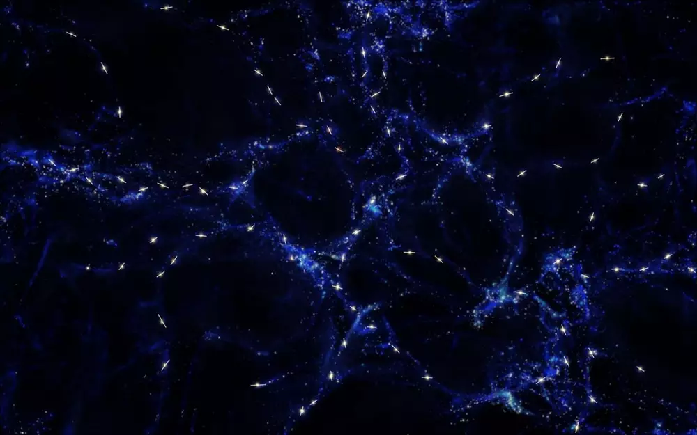 Продолжая наблюдения, ученые пришли к еще одному неожиданному выводу. Оказалось, что оси вращения квазаров повсеместно ориентированы вдоль направления нити (или волокна) крупномасштабной структуры, в которой они находятся. То есть ось того или иного квазара обязательно параллельна оси местного волокна крупномасштабной структуры. По оценке астрономов, вероятность того, что такое совпадение ориентаций является случайным, не превышает 1 процента.