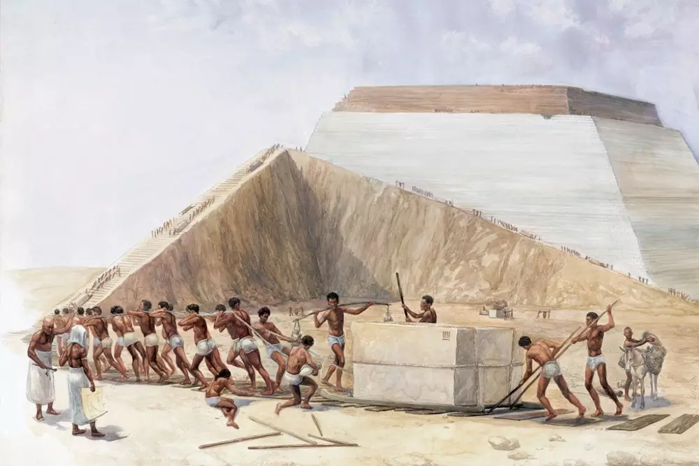 Как известно, для возведения пирамид древним египтянам приходилось постоянно перемещать по пустыне огромные каменные блоки. Строители поднимали тяжелые грузы на сани, которые рабочие затем тянули по песку.