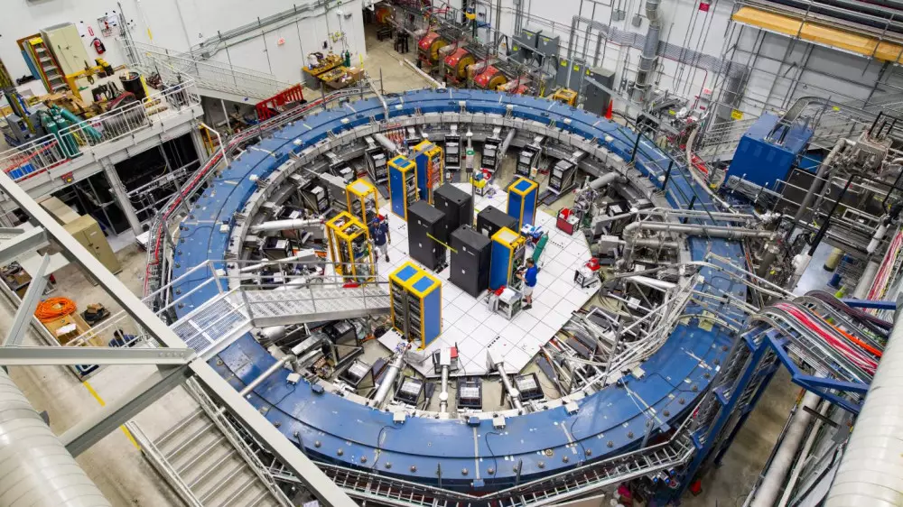 В ходе эксперимента частицы мюон разгонялись по 14-метровому кольцу в Фермилабе под воздействием мощного магнитного поля. Команда ученых обнаружила, что мюоны колеблются совершенно непредсказуемым образом. Согласно известным законам физики это должно было приводить к колебанию мюонов с определенной частотой.