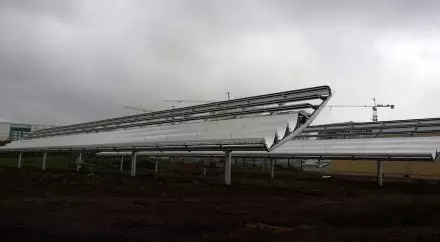 Система состоит из одноосевого трекера (электропривод) и шестирядных сферических зеркал, отражающих свет на кремниевые солнечные элементы, что увеличивает концентрацию солнечного света, за счет чего удваивается производительность системы и соответственно выработка электроэнергии.