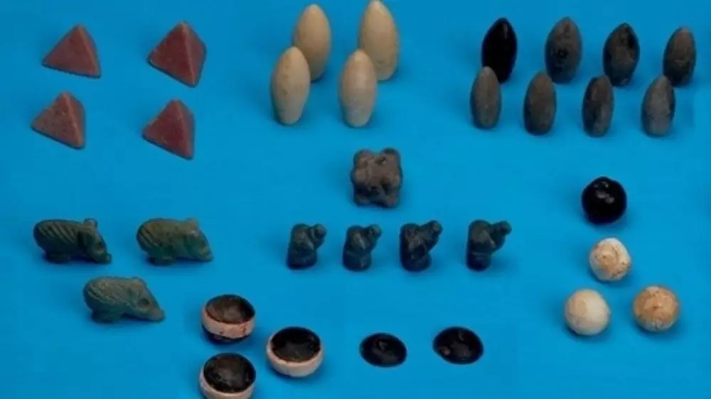 49 фигурок, вырезанных из камня, вероятно, использовались для древнего подобия настольной игры. Они отличаются формой и цветом. Среди них есть фигурки, изображающие свиней и собак, в форме пирамиды и пули, а также круглые фигурки. Некоторые токены окрашены в синий, зеленый, красный и белый цвета.