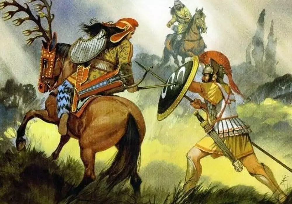 Соплеменники снабдили умерших всем необходимым для загробной жизни, включая и золотые украшения, однако еще в древности курган был разграблен. "Здесь хоронили социальную элиту того времени. Найдены скелеты двух людей, рядом - останки жертвенного коня", - рассказал руководитель экспедиции Арман Бисембаев.