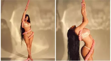 Однако поводом для обсуждения в Сети стало не белье, а пышные формы модели. Чтобы еще больше подчеркнуть фигуру, девушка добавила к образу толстую розовую веревку, которую обернула вокруг тела.