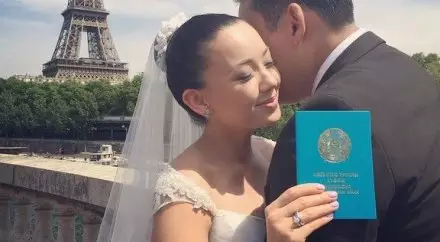 "Бакытыма шек жок ("Я безгранично счастлива")", - подписала Асем свадебную фотографию. На снимке, сделанном в Париже, артистка в свадебном платье и с обручальным кольцом на безымянном пальце обнимает своего избранника. При этом в руке она держит свидетельство о браке.