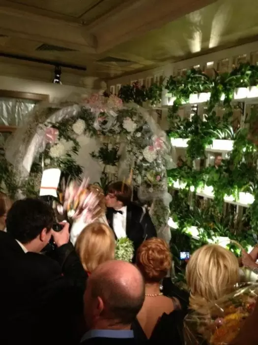странице Баскова в микроблоге появились фотографии ресторана в Москве (его название так и остается неизвестным), где проходила гулянка, первое появление молодоженов перед гостями, а также снимки Филиппа Киркорова и миллиардера Михаила Прохорова, приехавших поздравить счастливую пару.