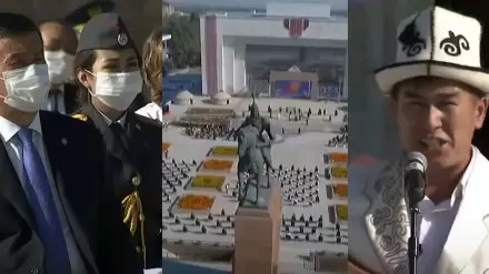 Под аккомпанемент комуза акын-импровизатор рассказал о борьбе за независимость кыргызского народа и об объединении народа в борьбе с COVID-19. Также он перечислил известных деятелей искусства, политики и религии, которые умерли из-за последствий коронавируса.