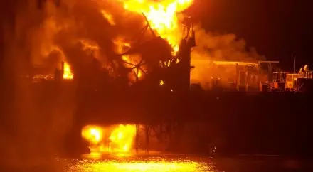 В Азербайджане объявлен траур после пожара на нефтяной платформе в Каспийском море Фото day.az