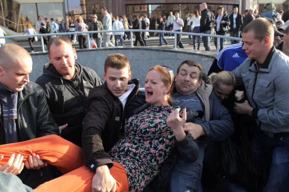 Более сотни человек задержаны в Минске во время марша оппозиции, организованного движением "Революция через социальные сети" в День независимости Беларуси. Как сообщают корреспонденты РИА Новости, против участников акции был применен слезоточивый газ. Людей валили на асфальт и затаскивали в спецмашины. Стражи порядка задерживали как молодых, так и пожилых людей. Сотрудники правоохранительных органов попытались задержать протестующих, пришедших на акцию с малолетними детьми. Это вызвало бурю протеста, в результате которой демонстранты защитили граждан с детьми, не дав их задержать.