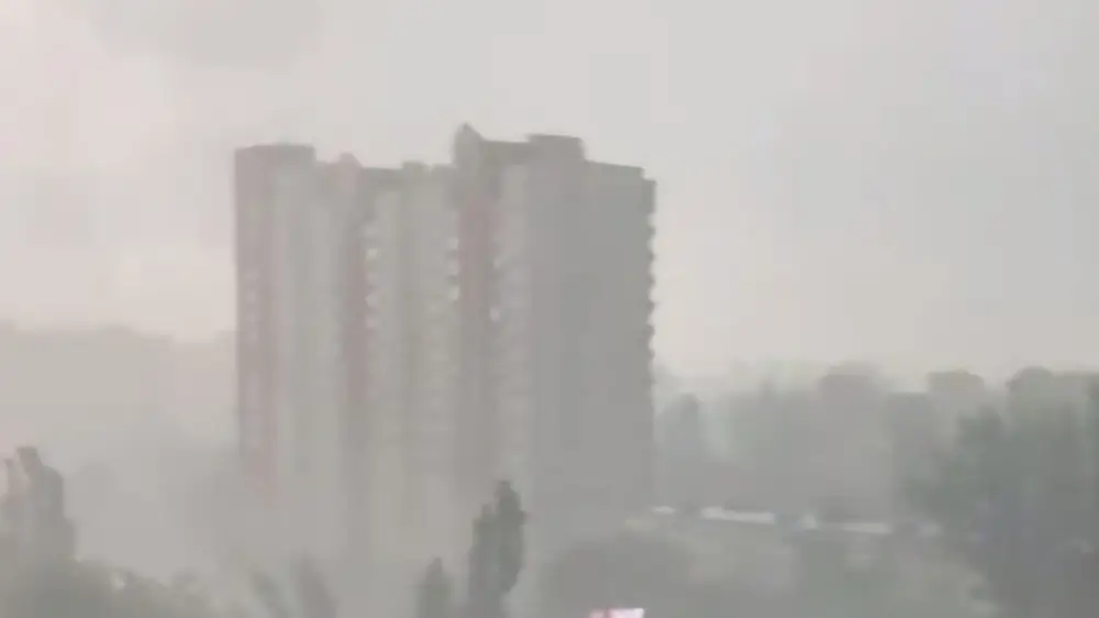 В Киеве начались сильный ливень и пыльная буря, а также выпал град, передает Tengrinews.kz. Об этом в социальных сетях стали сообщать жители города.