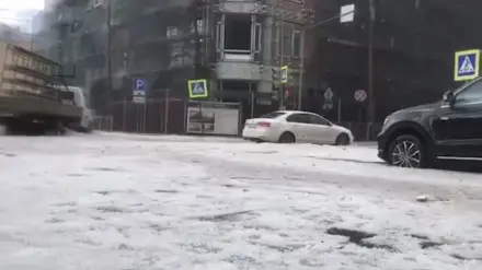 По информации Telegram-канала Mash, в городе прошел дождь с градом, после чего улицы стали напоминать не позднее лето, а раннюю весну, когда лед с дорог и тротуаров только сходит.