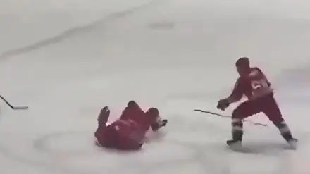 Президента Беларуси сбили с ног во время хоккейного матча: трибуны замерли