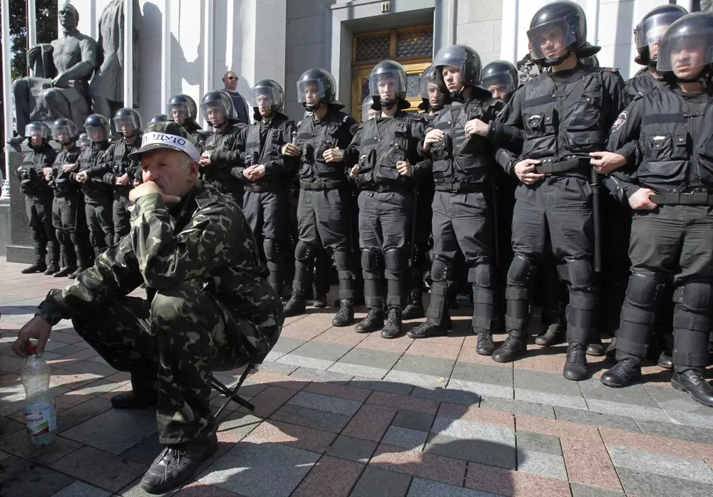 В акции протеста участвует порядка тысячи человек, они скандируют: "Позор!" и требуют, чтобы к ним вышли депутаты. Протестующим пока не удается прорваться в парламент. Но, по информации агентства, повсеместно происходят стычки с милицией. Спецназ, до этого блокировавший подступы к зданию, перегруппировался ко входу в Раду.