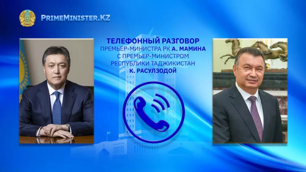 Премьер-министр Казахстан Аскар Мамин провел телефонный разговор с премьер-министром Республики Таджикистан Кохиром Расулзодой, передает Tengrinews.kz со ссылкой на primeminister.kz.