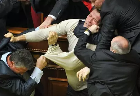 На Украине во время драки в Верховной Раде пострадали четверо депутатов от фракции "БЮТ-Батькивщина" Василий Кравчук, Юрий Гнаткевич, Михаил Волынц и Владимир Бондаренко, сообщает УНИАН По данным агентства, Волынца и Кравчука "стукнули столиком по голове", а Бондаренко сломали руку у запястья. Также сообщается, что у Гнаткевича поднялось давление, которое составило 280 на 100. Все депутаты были госпитализированы. Драка между депутатами из оппозиционной фракции "БЮТ-Батькивщина" и из Партии регионов возникла во время захвата президиума парламента "регионалами". Как ранее сообщалось, оппозиция собиралась ночевать в зале заседаний за отказ депутатов Рады обратиться в генпрокуратуру с просьбой изменить меру пресечения, которая была избрана для Юлии Тимошенко.