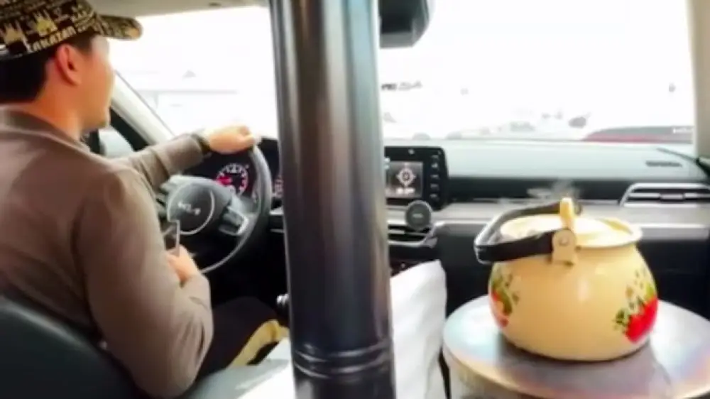 Блогер хотел показать своим подписчикам, как установить железную печь себе в машину. Он продырявил крышу своего автомобиля KIA для установки дымохода от железной печки, которая заняла место переднего сиденья. На самой печке мужчина решил вскипятить чайник.