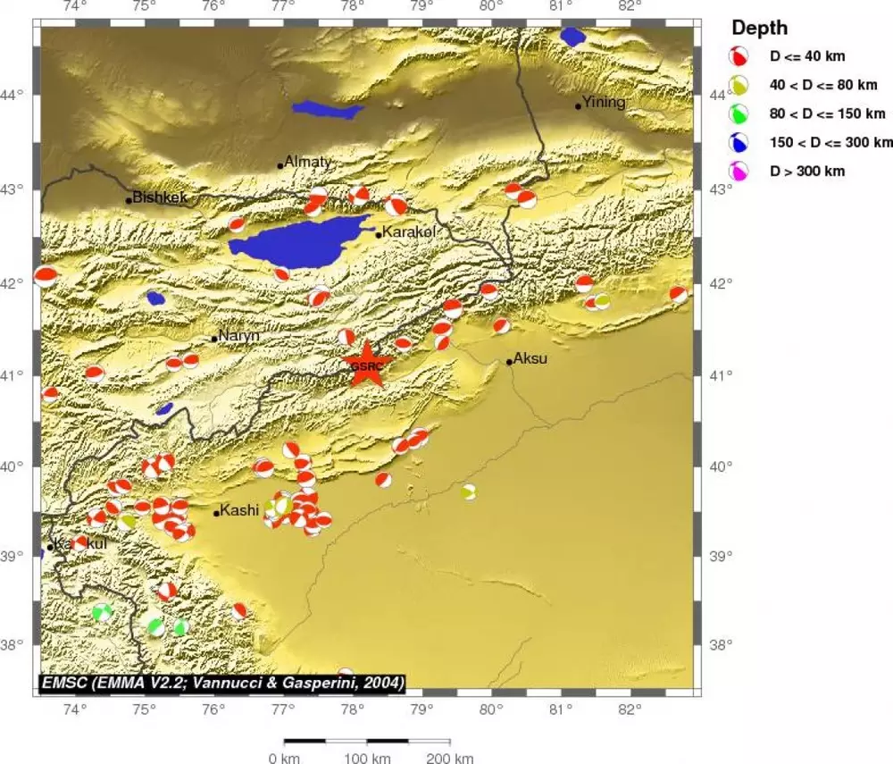 Подземные толчки были зафиксированы 26 июля в 10.36 по времени Астаны. Эпицентр землетрясения находился в 172 километрах к западу от Аксу и в 139 километрах к югу от Кызылсуу. Глубина подземных толчков составила пять километров.