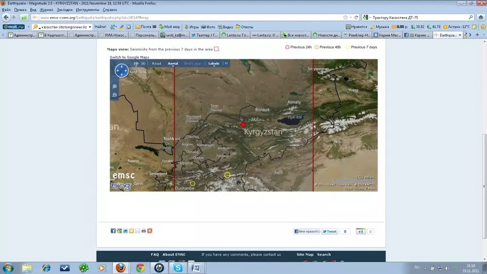 В Кыргызстане произошло землетрясение магнитудой 3,5, передает корреспондент Tengrinews.kz со ссылкой на Европейско-Средиземноморский сейсмологический центр. Эпицентр подземных толчков находился на глубине 16 километров в 102 километрах юго-западнее столицы страны города Бишкек, в 75 километрах южнее поселка городского типа Каинды и в 71 километре южнее казахстанского города Гранитогорск. Информации о жертвах и разрушениях нет.
