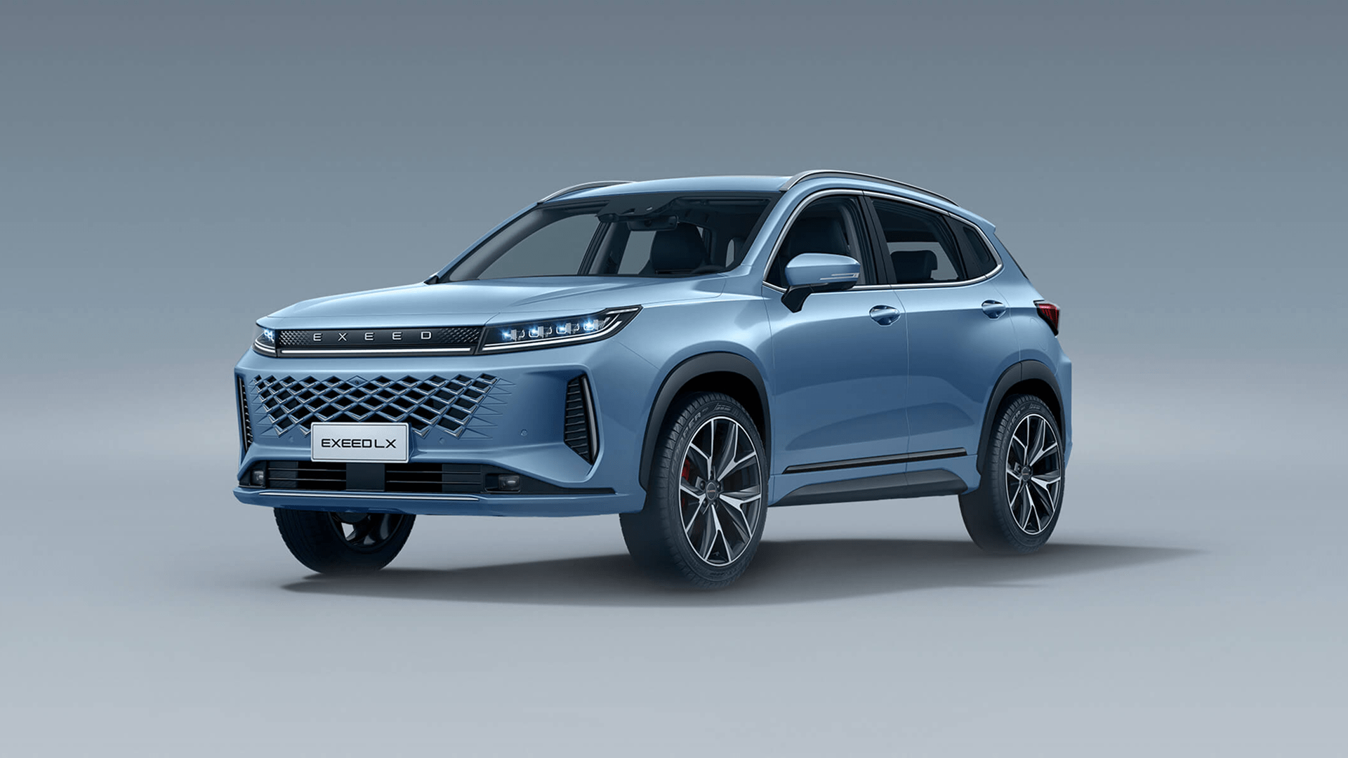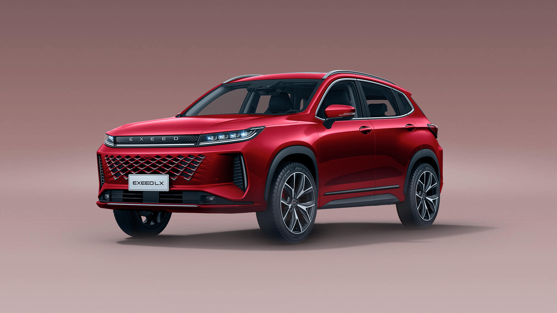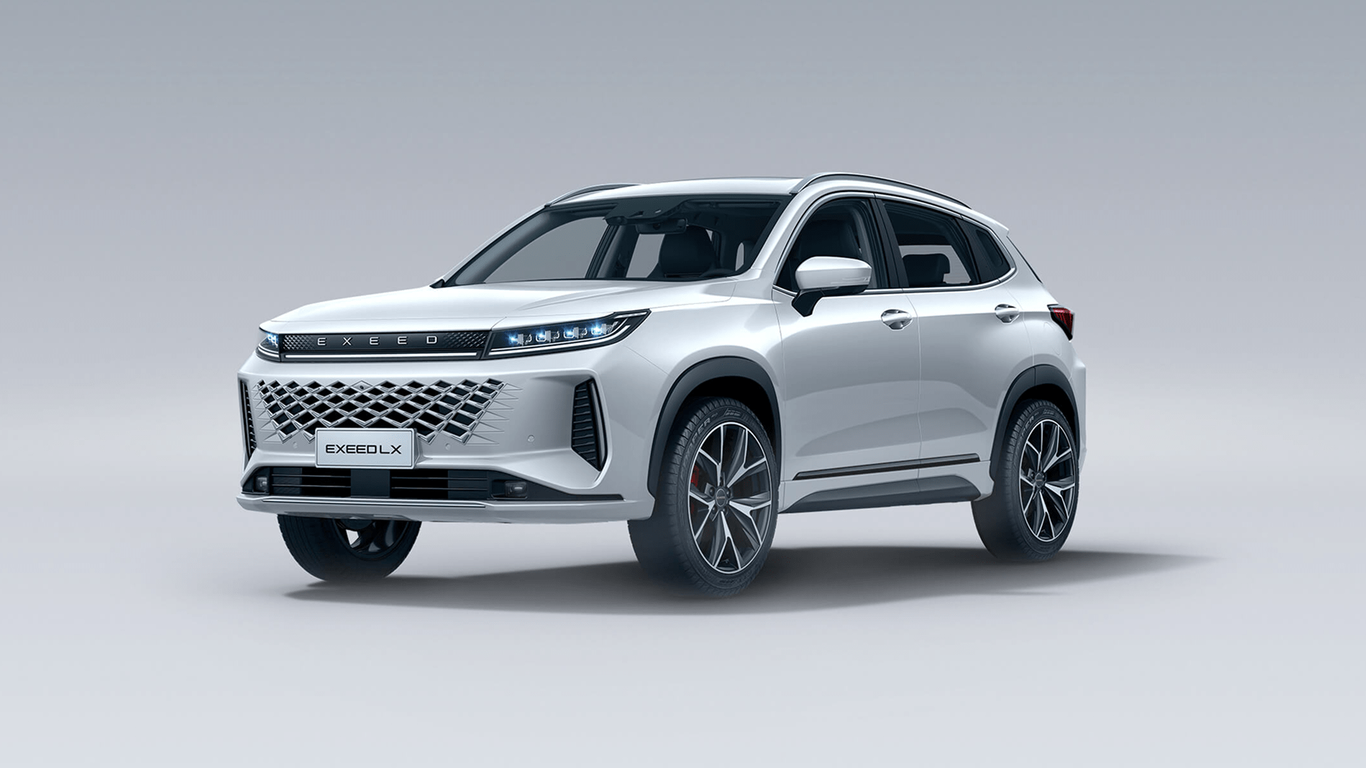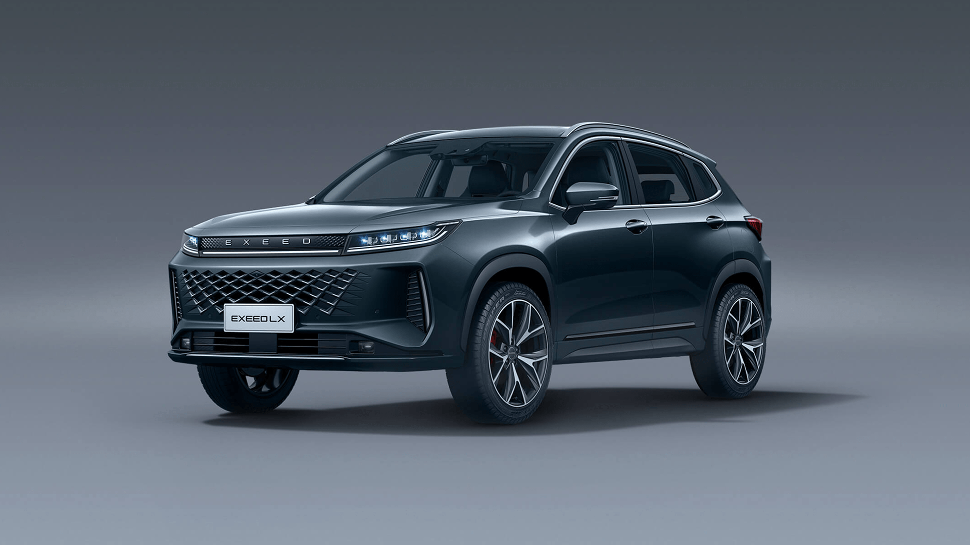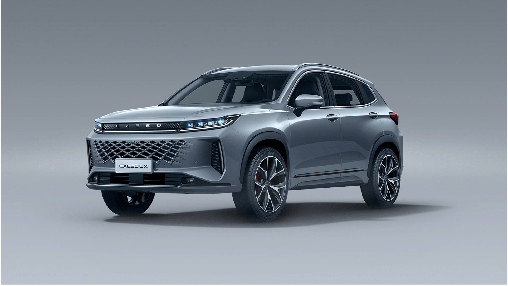 Внешний облик EXEED LX выполнен в современном стиле компактного городского кроссовера. Автомобиль получил выразительную переднюю часть с светодиодными фарами основного света и светодиодными дневными ходовыми огнями. Динамичный силуэт кузова дополняют легкосплавные колесные диски размером 18 дюймов, рейлинги на крыше и хромированные элементы отделки оконной линии. Кроссовер предлагается в нескольких цветах кузова, включая белый, голубой, красный, серый и темно серый металлик, что позволяет подобрать автомобиль под индивидуальный стиль владельца.