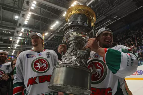 Казанский хоккейный клуб "Ак Барс" во второй раз подряд становится обладателем Кубка Гагарина, сообщается на официальном сайте КХЛ. В решающем матче финальной серии подопечные Зинэтулы Билялетдинова одержали победу над подмосковным ХК МВД со счетом 2:0. В первом тайме инициативу захватили хоккеисты МВД, однако казанцы также успели совершить несколько опасных атак. "Команды действуют предельно собрано, внимательно играют в обороне. В таком ключе матч будет протекать до первой шайбы", - заявил во время перерыва форвард "Ак Барса" Дмитрий Казионов. Счет в седьмом матче финальной серии Кубка Гагарина на 22-й минуте открыл нападающий "барсов" Никита Алексеев, а затем преимущество казанцев увеличил финский легионер Нико Капанен, поразивший ворота канадского вратаря "милиционеров" Майкла Гарнетта с передачи Казионова. "Два пропущенных гола уже придали нам дополнительной злости. Теперь деваться нам некуда, будем действовать еще более активно", - отметил после завершения второго периода нападающий ХК МВД Евгений Федоров. В третьем тайме опасную атаку провел форвард "милиционеров" Алексей Угаров, но шайба попала в перекладину.