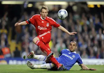 Во вторник состоялись два ответных поединка 1/4 финала Лиги чемпионов, в которых право играть в полуфинале престижного турнира обеспечили себе английский "Челси" и испанская "Барселона". Победив в первом матче на выезде "Ливерпуль 3:1, "аристократы" считались явными фаворитами своей пары. Однако уже в первом тайме ответного матча "красные" заставили Петера Чеха дважды вынимать мяч из сетки собственных ворот, до предела обострив интригу. В первом случае Арбелоа воспользовался ошибкой стража ворот "синих", а во втором Хави Алонсо уверенно реализовал пенальти, назначенный за фол Ивановича.