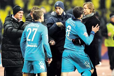 Сразу после окончания футбольного матча между московским "Спартаком" и питерским "Зенитом" выяснение отношений перекинулось в нефутбольную обстановку, сообщает "Советский спорт". Зенитовский полузащитник Игорь Денисов бросил в сторону главного тренера московской команды Валерия Карпина какую-то фразу, а затем и футбольный мяч. После чего возникла потасовка между футболистами обеих команд.