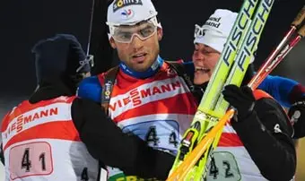 Французскому квартету в составе Мари-Лор Брюне, Сильви Бекар, Венсан Дефран и Симон Фуркад удалось пройти дистанцию за 1 час 30 минут и 10 секунд. Вторыми финишную черту пересекли шведские биатлонисты, а замкнула тройку призеров команда из Германии. Выступление российской сборной в этой эстафете сложилось не очень удачно.