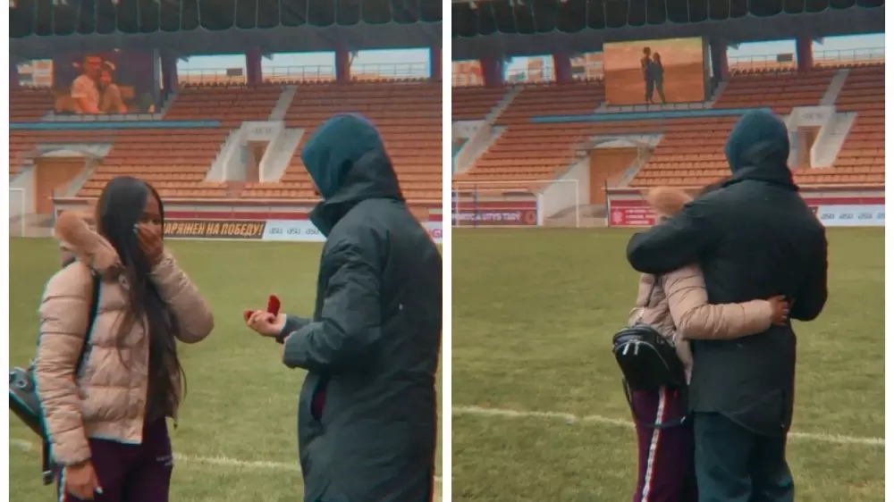 Футболист "Актобе" Адильхан Танжариков предложил руку и сердце своей возлюбленной сразу после матча с "Шахтером". Романтическое событие произошло на Центральном стадионе Актобе, сообщает Tengrinews.kz со ссылкой на пресс-службу клуба.