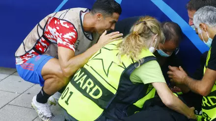 Нападающий заметил это, перелез через ограждение и подошел к девушке, которой оказывали медицинскую помощь. Португалец извинился перед сотрудницей и убедился, что с ней все в порядке.