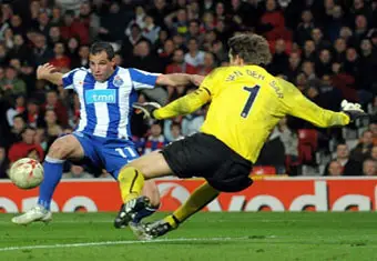 Во вторник состоялись первые два матча 1/4 финала розыгрыша Лиги чемпионов. Действующий победитель турнира английский "Манчестер Юнайтед" на своем поле не смог переиграть португальский "Порту", сыграв вничью 2:2. Гости открыли счет уже на 4-й минуте матча усилиями Родригеса, отправившего мяч в дальний угол защищаемых ван дер Саром ворот. Спустя 12 минут ошибкой защитника "драконов" воспользовался нападающий "красных дьяволов" Уэйн Руни, в ближнем бою без особых хлопот переигравший стража ворот "Порту" Хелтона. Во втором тайме команды обменялись забитыми мячами в исполнении Тевеса ("Манчестер Юнайтед") и Гонсалеса ("Порту").