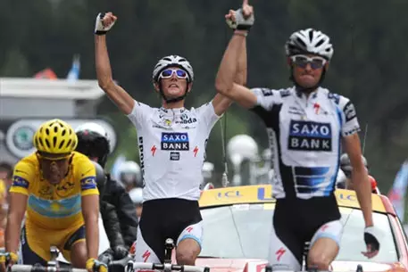 Победой люксембуржского гонщика Франка Шлека завершился 17-й этап престижной веломногодневки "Тур де Франс", сообщает официальный сайт гонки. Выступающий за Saxo Bank преодолел дистанцию протяженностью в 169,5 километра между городами Бурж-Сен-Мори и Ле Гран-Борнан за четыре часа 53 минуты 54 секунды. 17-й этап стал последним альпийским этапом на нынешнем Французском Туре. Поэтому для братьев Шлек, специализирующихся на трудных горных подъемах, это был один из немногих оставшихся шансов добиться преимущества над своими главными конкурентами - выступающими за "Астану" Альберто Контадором, Лэсном Армстронгом и Андреасом Клоденом - в борьбе за подиум на Елисейских полях. Шлеки пошли в атаку на предпоследней категорийной горе этапа. Им удалось "сбросить с колеса" почти всех главных соперников. Единственным выдержавшим темп люксембуржцев гонщиком стал Контадор. На финише этапа младший из братьев Шлек Энди и испанец по молчаливому согласию отдали победу больше всех работавшему в этот день Франку Шлеку. Армстронг приехал спустя две минуты 18 секунд после победителя. Клоден проиграл еще девять секунд. В верхней части генеральной классификации после 17-го этапа произошли значительные изменения. Желтую майку лидера по-прежнему удерживает капитан "Астаны" Контадор. Он опережает поднявшегося на второе место Энди Шлека на две минуты 26 секунд. На третьем месте идет Франк Шлека, проигрывающий младшему брату 59 секунд. Пятерку сильнейших дополняют Армстронг и Клоден. В четверг гонщикам предстоит выявить сильнейшего в индивидуальной гонке с раздельным стартом на 40,5 километра. Ожидается, что в этот день пойдут в контратаку три лидера "Астаны", являющиеся специалистами в данной дисциплине.