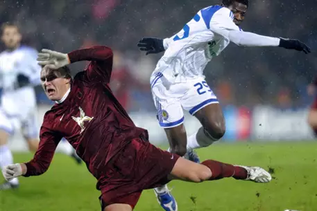 Казанский "Рубин" и киевское "Динамо" разошлись миром, не сумев забить голов в матче в столице Татарстана, сообщает официальный сайт УЕФА. Динамовцы пожаловали в Казань, потеряв двух основных центральных защитников - Евгений Хачериди получил травму в матче Украина-Греция, а бразилец Леандру Альмейда пропускал встречу из-за перебора желтых карточек. Стартовый отрезок первого тайма прошел в равной борьбе, преимущественно в центре поля. По истечении четверти часа киевляне захватили инициативу и провели несколько опасных атак. Заводилой в составе гостей был Андрей Шевченко. Всякий раз украинский форвард запутывал своими перемещениями защитников "Рубина", а именно Кристиана Ансальди, отвечавшего за него персонально. Пару неплохих возможностей открыть счет имел молодой форвард "Динамо" Андрей Ярмоленко. Ближе к середине первой половины встречи хозяева поля выравняли игру, а позже и завладели игровым преимуществом. Плотная игра оборонцев "Динамо" до поры, до времени не позволяла развернуться атакующим игрокам "Рубина", однако на последней минуте тайма казанцам удалась острая атака. Гекдениз Карадениз прорвался по правому флангу и навесил в штрафную на свободного Алехандро Домингеса. Аргентинец беспрепятственно бил красивым ударом "ножницами", но блестяще сыграл голкипер киевлян Александр Шовковский, спасший свою команду. На перерыв команды ушли при счете 0:0. Второй тайм обе команды начали агрессивнее, обменявшись серией опасных моментов. Киевляне угрожали воротам Сергея Рыжикова чаще, нежели казанцы беспокоили Шовковского. Уже на 51-й минуте Ярмоленко выходил один на один с голкипером "Рубина", однако Рыжиков выиграл борьбу у форварда украинцев, мяч отскочил к Шевченко, но тот не попал по мячу, метясь в уже пустые ворота. На 76-й минуте матча возникает самый опасный момент у ворот хозяев поля - после дальнего удара мяч проскакивает между ног у вратаря "Рубина", задевает пятку и укатывается на угловой. В концовке игры гости прижали казанцев к воротам, подав серию угловых, но матч так и закончился нулевой ничьей. Таким образом, "Рубин" набрал шесть очков и сравнялся по этому показателю с лидером группы миланским "Интером". Итальянцы сегодня на "Ноу Камп" сыграют с "Барселоной". Киевляне остались на последнем месте в группе.