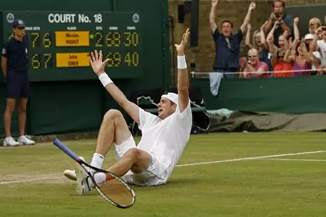 Самый продолжительный матч в истории профессионального тенниса закончился победой американца Джона Изнера над французом Николя Маю со счетом 70:68 в пятом сете, сообщатся на официальном сайте турнира "Уимблдон". Игра началась 22 июня и после четырех партий была прервана из-за темноты. На следующий день теннисисты продолжили поединок, который был вновь прерван из-за наступления ночи при счете 59:59 на 118 гейме. 24 июня спортсмены дошли до 138 гейма, когда при счете 30:30 американец дважды переиграл вышедшего к сетке француза. В общем теннисисты подали навылет 215 раз, Изнер установил рекорд по количеству эйсов в одном матче - 112. Противостояние теннисистов длилось 11 часов пять минут, причем только пятый сет продолжался восемь часов 11 минут. Изнер и Маю побили прежний рекорд по продолжительности матча. В 2004 году французы Фабрис Санторо и Арно Клеман сражались в первом раунде "Ролан Гаррос-2004" шесть часов 33 минуты. Во втором круге "Уимблдона" Изнеру предстоит сыграть с голландцем Тиемо Де Баккером.