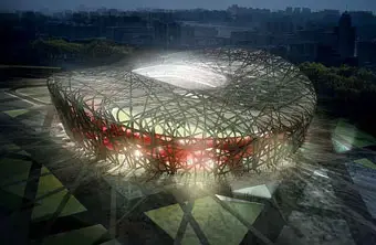 Стадион общей площадью в 250 тысяч квадратных метров вмещает в себя 91 тысячу человек. Строительство архитектурного сооружения началось в декабре 2003 года. На его реализацию понадобилось полмиллиарда долларов. Созданное по проекту швейцарских архитекторов "птичье гнездо" стало одним из самых грандиозных спортивных сооружений. По итогам 2007 года стадион вошел в список "десяти лучших архитектурных сооружений в мире", опубликованный в американском журнале Time.